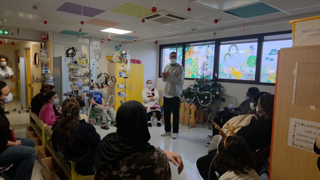 Les humoristes du Paname Art Café, Yassine Hitch, Mourad Lebarouf, Jasmine Volakas étaient présents au service gastro-entérologie de Robert Debré pour faire rire enfants, famille et personnel soignant.