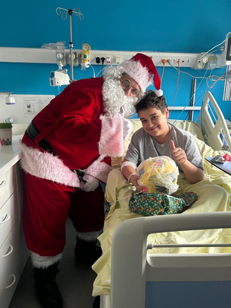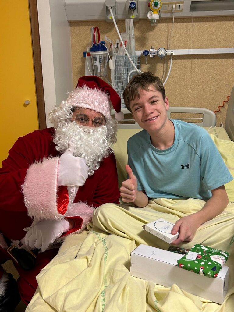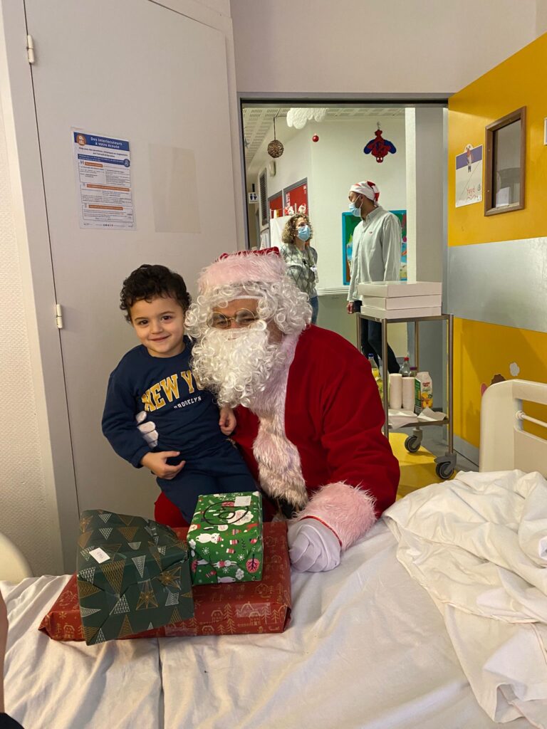 Le Père Noël de LHF Espoir est venu à la rencontre des enfants hospitalisés dans 7 services pédiatriques : Hôpital Robert Debré (service gastro-entérologie, cardiologie et néphrologie), Hôpital Necker (service gastro-entérologie), CHIC de Créteil (service pédiatrique), CHU d’Estaing à Clermont-Ferrand (service pédiatrique), Hôpital Saint-Louis (service hématologie).